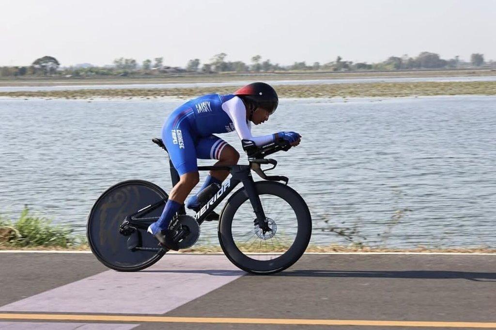 Taiwanese cyclist Feng Chun-kai (馮俊凱) yesterday came third in the men’s elite individual time trial at the 2025 Asian Road Cycling Championships, winning Taiwan's first medal at the event.