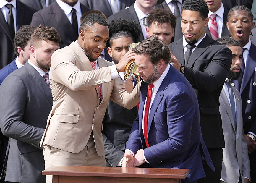 US Vice President J.D. Vance ended the Ohio State football team’s visit to the White House on Monday by fumbling the team’s national championship trophy.