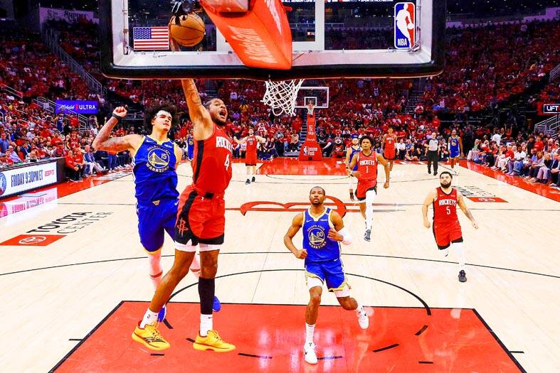 The Rockets then used an 8-0 spurt, highlighted by a step-back trey from Jalen Green, to extend the lead to 99-80 with 5 minutes, 30 seconds remaining. Draymond Green received a technical foul in that stretch for arguing with officials and Eason received one for throwing a towel in an “unsportsmanlike manner.”
