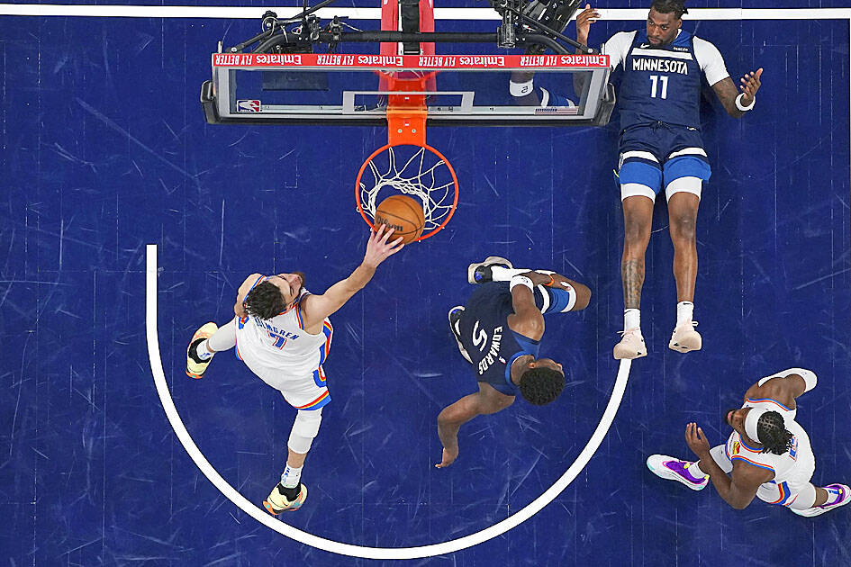 ‘HIGH STANDARD’: The Thunder are on track for a Finals-Cup double after they scored 22 three-pointers in equaling the best 25-game start to a season in NBA history The Oklahoma City Thunder on Wednesday bagged a 16th straight victory, thrashing the Phoenix Suns 138-89 to romp into an NBA Cup semi-final clash with the San Antonio Spurs, who stunned the Los Angeles Lakers 132-119. NBA Most Valuable Player Shai Gilgeous-Alexander scored 28 points to lead the reigning NBA champions Thunder, who improved to 24-1 to equal the best 25-game start to a season in league history. They dominated from start to finish to book their place in the final four of the in-season tournament in Las Vegas, where they are tomorrow to take on the Spurs. The New York Knicks and