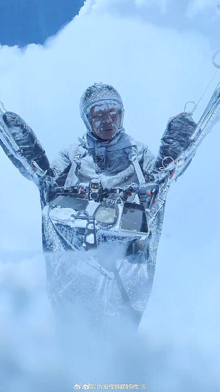 Video from Peng’s mounted camera showed him above the clouds and covered in icicles as the temperature dropped to a reported minus-35°C, as he tried to control his equipment.