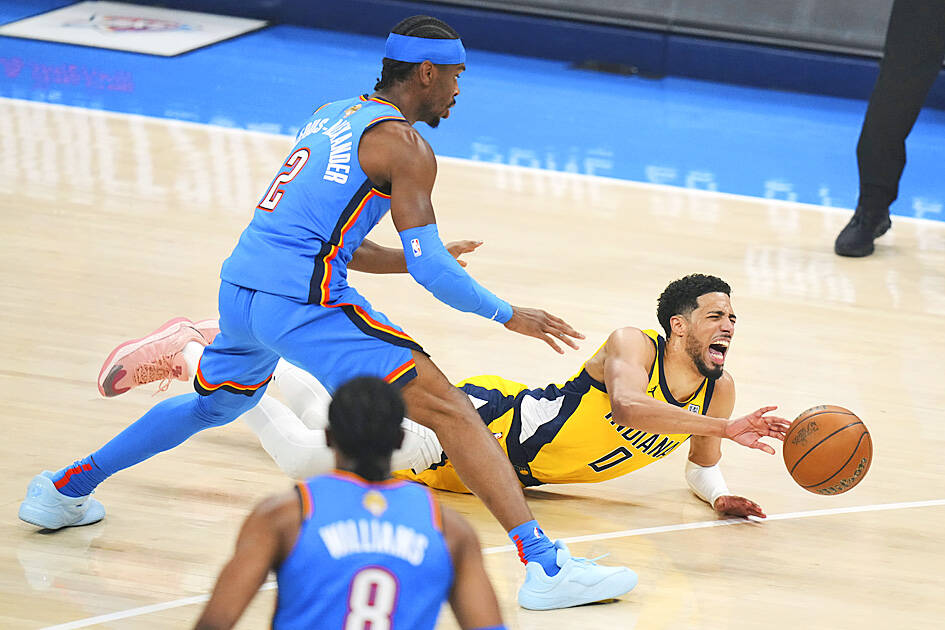 Shai Gilgeous-Alexander scored 29 points and handed out 12 assists and the Thunder’s swarming defense finally proved too much for a Pacers team that lost talisman Tyrese Haliburton to a leg injury just seven minutes into the contest.
