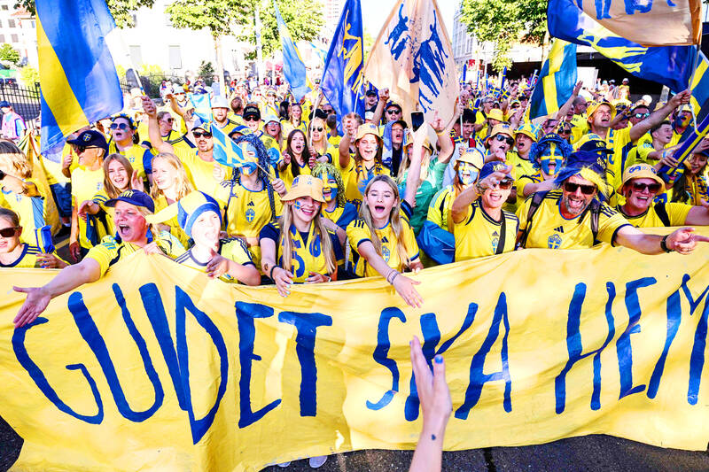 In the stands, their massive banner proclaims: “41 Years Since Last Time” on one side and “Bringing the Gold Home” on the other, referring to Sweden’s triumph at the inaugural Women’s Euros in 1984.