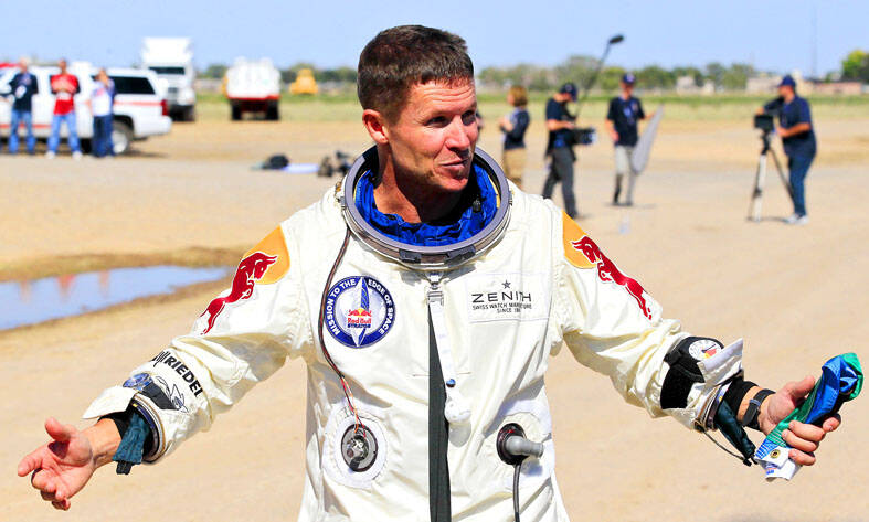 The Austrian made headlines around the world in October 2012 when, wearing a specially made suit, he jumped from a balloon 38km above Earth, becoming the first skydiver to break the sound barrier, typically measured at about 1,200kph.
