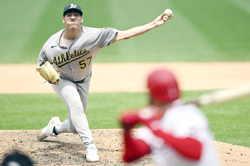 “For righties, the ball is coming kind of in at a weird angle for you,” Athletics catcher Willie MacIver said. “Lefties, his slider is coming from behind the lefties. Lefties don’t see a ton of that, so when we saw their lineup had six lefties in it, we’re like: ‘All right, we can have a good day today.’ We wouldn’t have had a good day if he didn’t execute, but he did.”