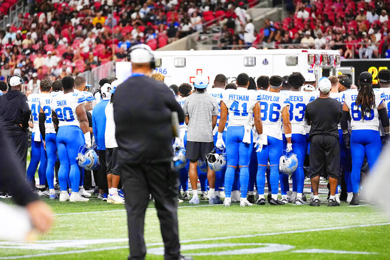 Detroit safety Morice Norris was attended to for about 20 minutes and taken off the field in an ambulance during the Lions’ preseason game on Friday night against Atlanta, with the game ending with 6:31 to go after the players let the clock run.