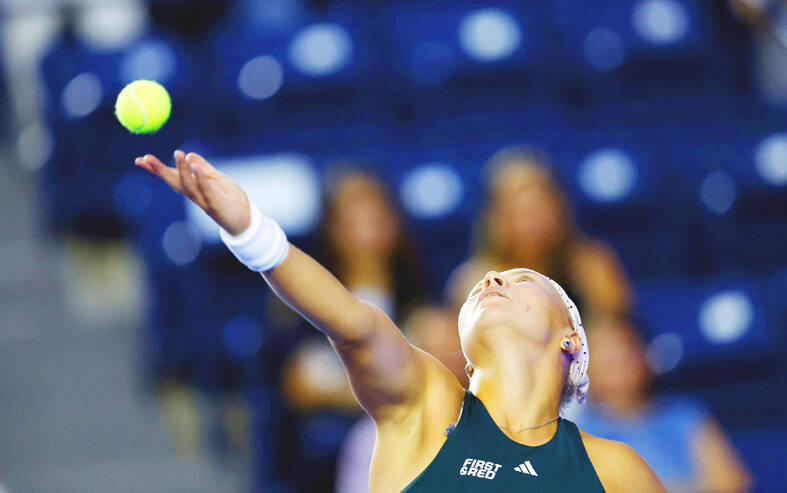 Diana Shnaider serves during her final match against Ekaterina Alexandrova in Monterrey, Mexico, on Saturday.