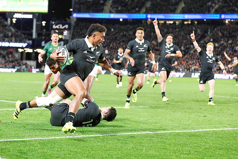 While Narawa’s game was over with an apparent rib injury minutes later, the All Blacks rolled on.