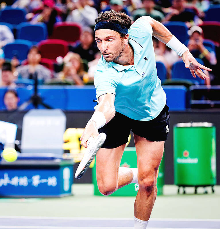 The German had injured his big toe toward the end of his previous match in Shanghai, but on Monday showed no sign of discomfort as he broke Rinderknech in the third game with a forehand.