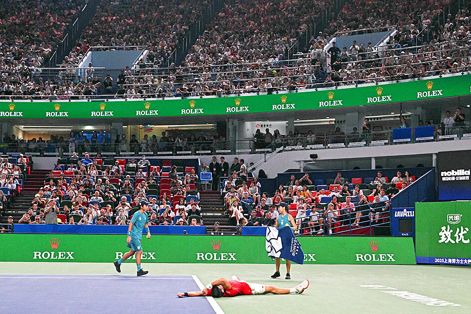 The main court in Shanghai has a roof, but it remains open and would only be closed if it rains — there is no forecast of that for the remainder of the tournament.