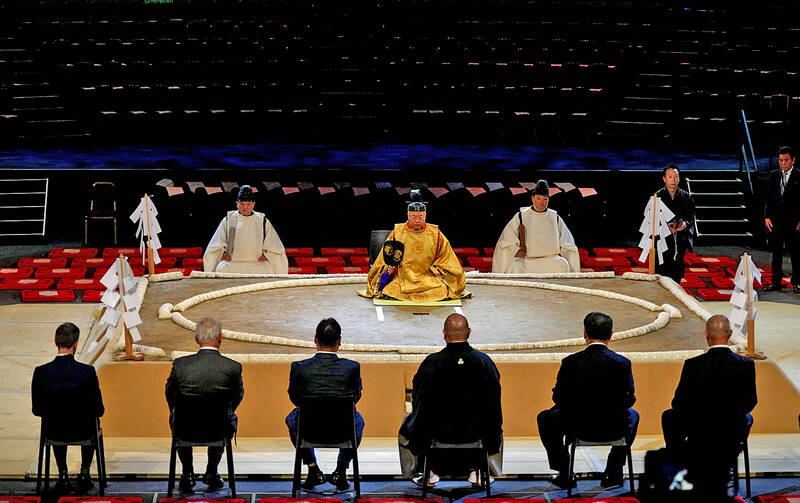 One final moment of ritual awaited as a junior wrestler stepped into the ring with a long stringless bow to perform the bow-twirling ceremony — a last chance to cast any evil spirits out of the “dohyo” earth and clay fighting platform before sending the audience out into the night.
