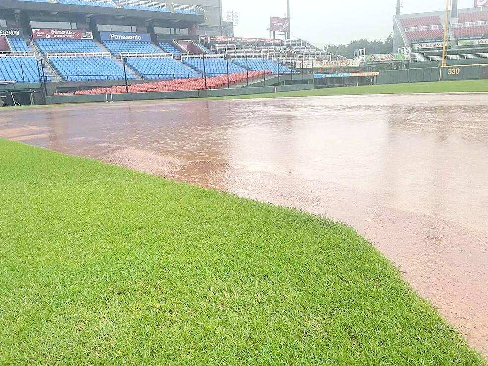 Game 4 of the CPBL’s Taiwan Series between the Rakuten Monkeys and the CTBC Brothers yesterday was postponed to today, after incessant rain over the past few days flooded the field at Taoyuan Baseball Stadium.