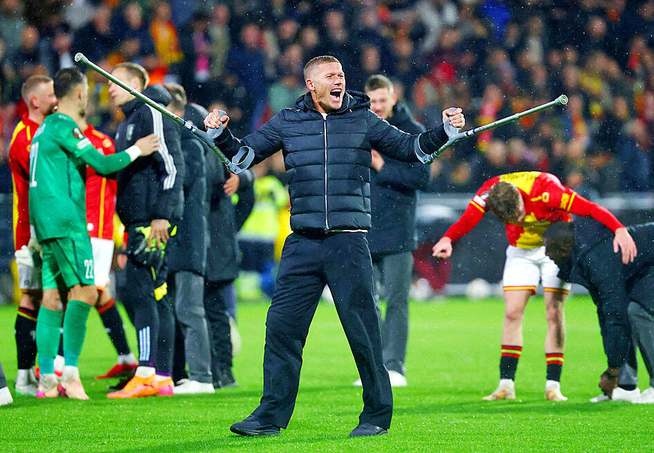 Mathis Suray equalized three minutes before interval with a lob — scoring the historic first goal in the Europa League for the hosts.