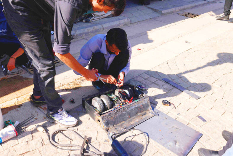 A few hours before his event, Alireza Hosseini put the final touches on combat robot Arash — a rudimentary machine of wires and wheels without the appearance of a humanoid.