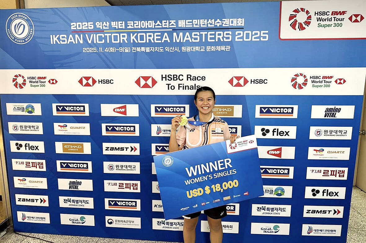 Taiwanese badminton player Chiu Pin-chian yesterday won her first Super 300 title, beating Vietnam’s Nguyen Thuy Linh in straight sets at the Korea Masters in Iksan, South Korea.