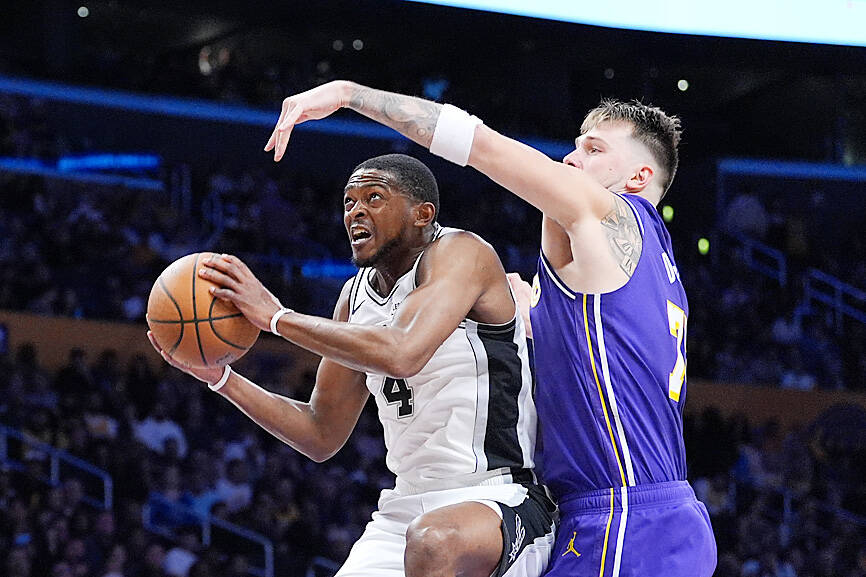 Seven Spurs players — including three reserves — scored in double figures as San Antonio withstood a 35-point performance from Lakers star Luka Doncic.