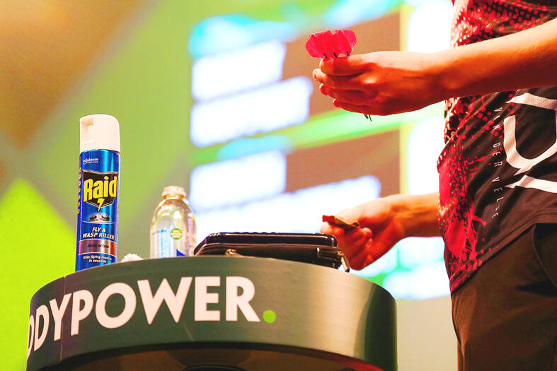 Wasps are causing mayhem on the stage at the World Darts Championship, so one player came prepared to deal with them.