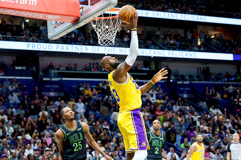 LeBron James and Luka Doncic on Tuesday combined for 60 points as the Los Angeles Lakers went on a late scoring spree to defeat the New Orleans Pelicans 111-103.