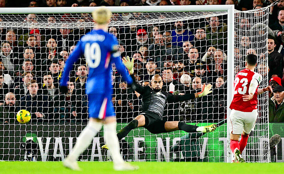 Arsenal on Wednesday scored two goals off errors by goalkeeper Robert Sanchez to set up a 3-2 win against Chelsea in the first leg of their EFL Cup semi-final.