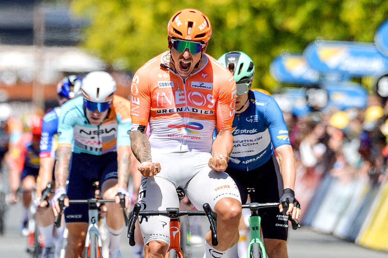 Welsford looked out of contention back in the peloton as the dash to the finish line developed in Nairne at the end of the 140.8km third stage, but Welsford was shepherded to the front by Ineos Grenadiers teammate Sam Watson before surging clear in the final 100m.