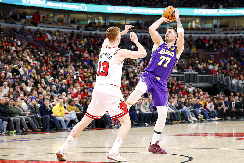 Doncic rattled in eight three-pointers on 15-of-25 shooting from the field, finishing with seven rebounds and 11 assists to lead an impressive Lakers effort at the United Center.