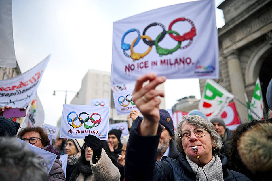 Hundreds of demonstrators on Saturday gathered in Milan, Italy, to protest the deployment of US Immigration and Customs Enforcement (ICE) agents during the upcoming Winter Olympics, unbothered by that agents would be stationed in a control room and not operating on the streets.