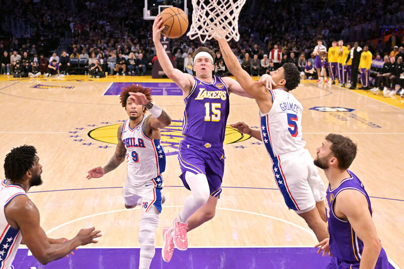 The Lakers withstood a 35-point performance from Sixers center Joel Embiid. Tyrese Maxey added 26 points and 13 assists for Philadelphia.