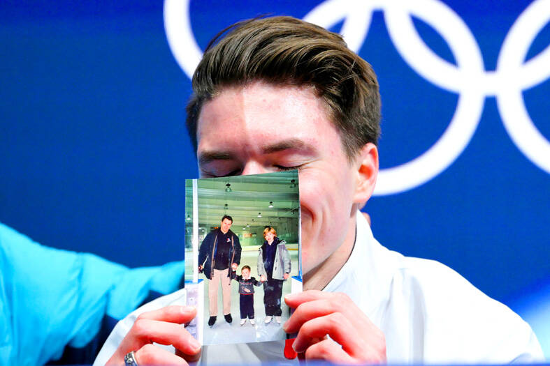 He still finds looking at photographs difficult, including the ones he pulled from a family album tucked above the refrigerator that he brought to the kiss-and-cry area. The idea of looking at videos of his parents still reduces him to tears.
