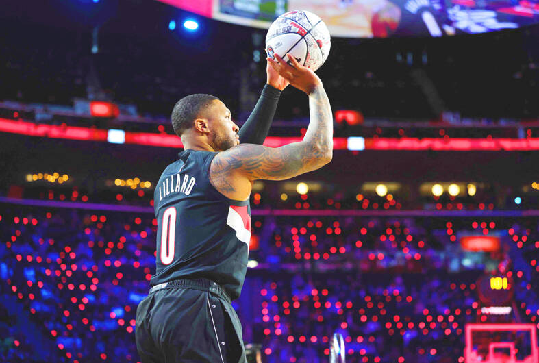 Meanwhile, Damian Lillard, out all season while recovering from a torn left Achilles tendon, matched a record by winning his third career NBA Three-Point Contest.