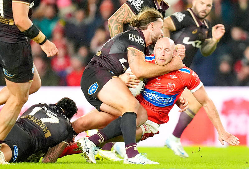 Any thoughts of a fightback by Brisbane, playing their first match since beating Melbourne Storm in the NRL Grand Final in October last year, appeared fanciful as Hull KR’s Oliver Gildart and Peta Hiku added further tries in the second half to extend the hosts’ lead to 30-4. Yet the Broncos, who came from behind three times in last year’s NRL final series, hit back with four tries in 16 minutes through Patrick Carrigan, Deine Mariner, Shibasaki and Kotoni Staggs to the despair of Robins supporters at the MKM Stadium in Hull, but the increasingly exhausted hosts clung on as they became the first club since Wigan in 2024 to hold the four major titles an English club can win at once.