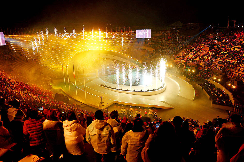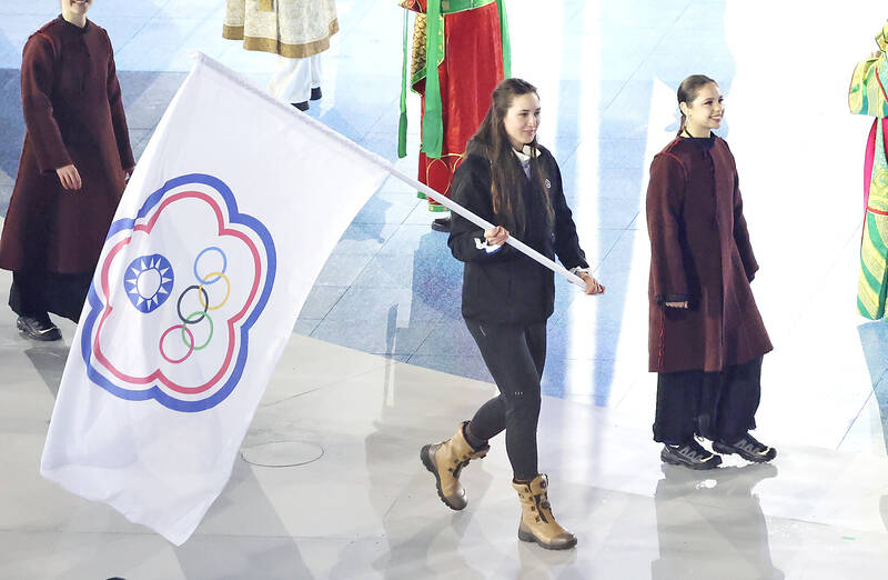 The 26-year-old led the parade of Taiwanese athletes at the Verona Arena, including figure skater Li Yu-hsiang, and bobsledders Lin Sin-rong and Lin Song-en, during the ceremony, which began at 8:30pm in the historic Italian city.