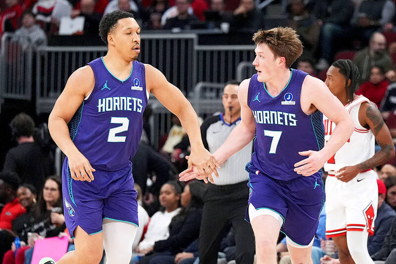 The Charlotte Hornets beat the Chicago Bulls 131-99, with rookie Kon Knueppel racing to his 200th three-pointer.