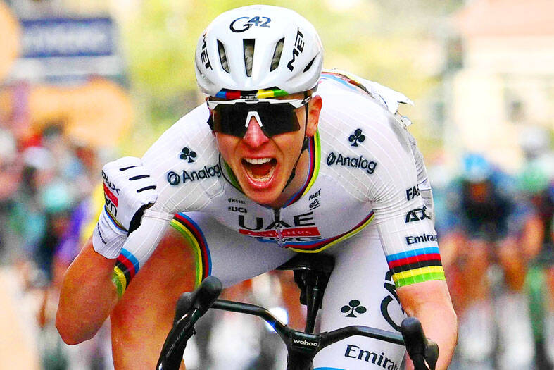 UAE Team Emirates rider Pogacar crossed the line on Via Roma in Sanremo with Pidcock right on his wheel after a brilliant battle between the pair from the final Poggio di Sanremo climb, with Wout van Aert rounding off the podium.