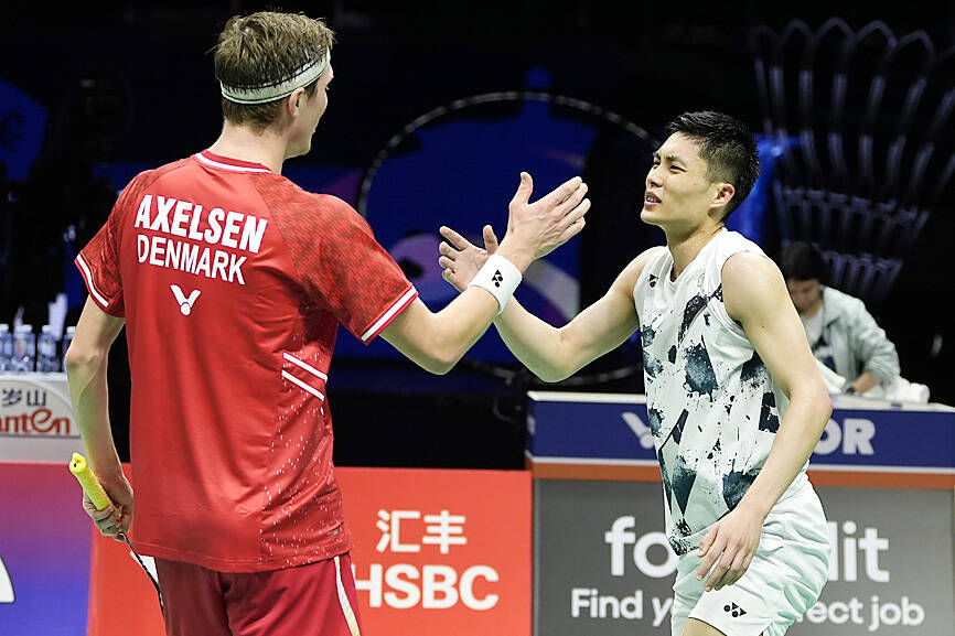 Denmark’s double Olympic badminton champion Viktor Axelsen, long a rival of Taiwan’s former world No. 2 Chou Tien-chen, yesterday announced his retirement at age 32, saying back problems meant he could no longer “compete and train at the highest level.”