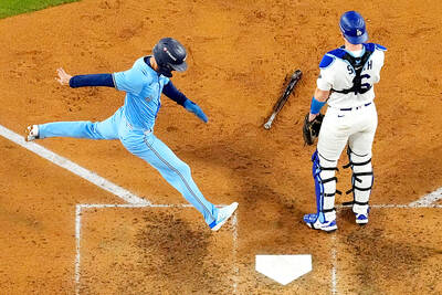 BLINDED BY THE LIGHTS: Kike Hernandez thought that a ball was going to hit him in the face, as he could not see it flying with the floodlights in his eyes