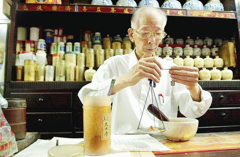 "Animal parts, minerals and herbs used to be the three main ingredients in Chinese herbal medicine," said Lin Ching-yi (林進益), director of the apothecary association. "However, since the government outlawed the use of animal parts, we no longer use them as ingredients in Chinese herbal medicine."