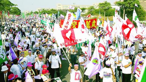 The three-hour rally in Kaohsiung came on the heels of comments by Presidential Office Secretary-General Chen Shih-meng's (陳師孟) remark that the ROC flag does not equal the ROC.