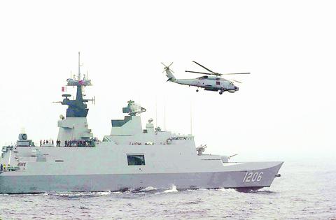 The navy held a live-fire exercise off the coast of Kaohsiung yesterday at a location close to where one of the Chinese ballistic missiles landed in 1996, a provocation which sparked the 1996 Taiwan Strait Crisis.