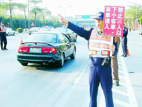 Holiday traffic restrictions barred vehicles carrying fewer than three people from the freeways between 9am and 5pm yesterday.
