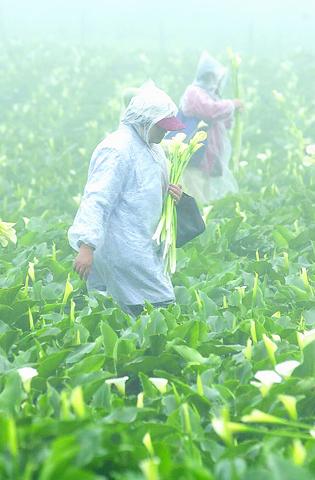 As a sideshow to the annual Yangmingshan flower festival, the flower growers of calla lily at Yangmingshan's Bamboo Lake (竹子湖) yesterday launched the annual calla lily flower festival, which offers visitors a hands-on gardening experience on the flower farms.