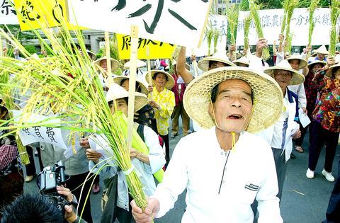 "Two kilos of rice is selling for less than a packet of cigarettes. Half a kilo is not worth a marinated egg," the farmers shouted outside the Legislative Yuan.