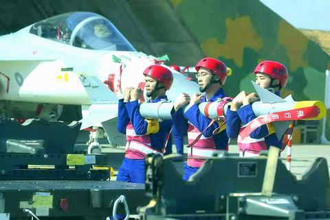 "The base sits at a distance of 126 miles [203km] and 163 miles [262km] away from the two nearest air bases across the Taiwan Strait in China. Chinese fighter planes can reach Taiwan within 10 minutes if they are not intercepted from our side," said Major Lin Kuo-yu (林國裕), a pilot with the wing.