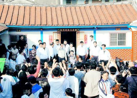 The streets of Kuantien township were swamped with residents who hoped to meet the president. Chen decided to walk from the temple to his old house, which enabled him to shake hands with supporters and greet the crowds.