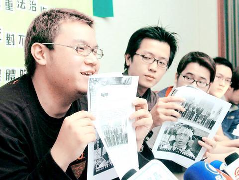Lin displayed photographs showing what he said were some of the hunger-striking students standing with KMT Chairman Lien Chan (