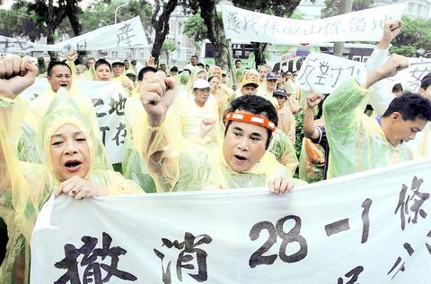 The meeting, now canceled, had been expected to approve revisions to the Mountain Slope and Conservation Law (山坡地保育利用條例) proposed by the Promotion of Rights of Plains People Living in Mountain Districts, or Pingquanhui (平權會) for short, and certain Aboriginal groups in February. The revisions sought to give non-Aboriginal people illegally using or living on reservation land prior to 1995 rights equal to those of Aboriginal people.