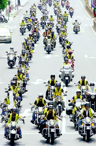 The demonstrators rode their motorcycles from the Taipei City Hall at one end of Jenai Road to the Presidential Office square at the other end of the road and later to the nearby Legislative Yuan.