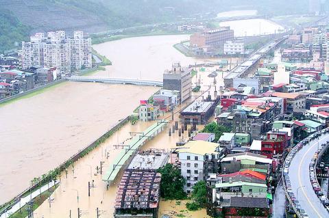 With torrential rains persisting throughout Friday night and yesterday morning, the army was called on for assistance, with roughly 200 soldiers building a sandbag embankment along the Keelung River early yesterday morning.