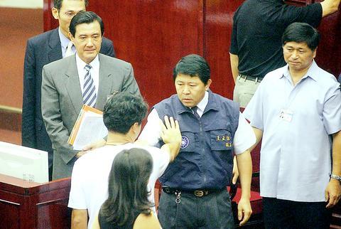 The session became chaotic at one point, as councilors from the Chinese Nationalist Party (KMT) tried to stop PFP councilors from questioning Ma.