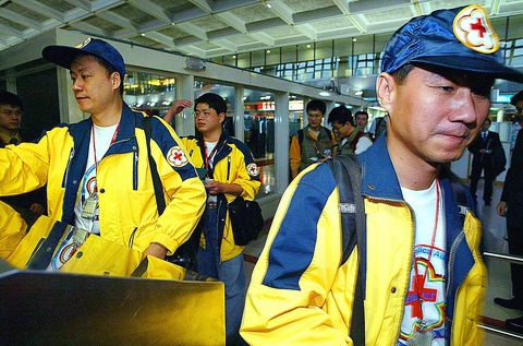 Minister of Health Chen Chien-jen (程建仁) went to the Chiang Kai-shek International Airport to support those preparing to face the grim realities of dealing the deaths of thousands. Chen thanked the volunteers for their selflessness.