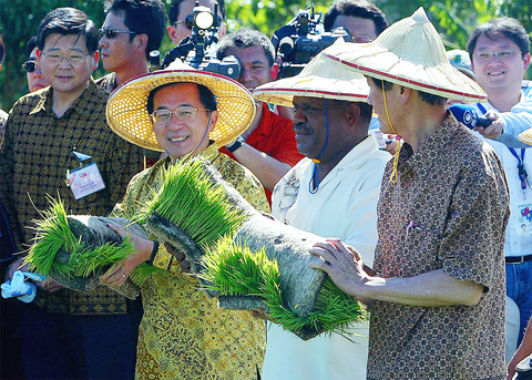 Referring to bending down when tending to the rice crops as well as snorkeling -- something he did for the first time in Palau on Saturday -- the president said the two activities would encourage his government to remain humble.